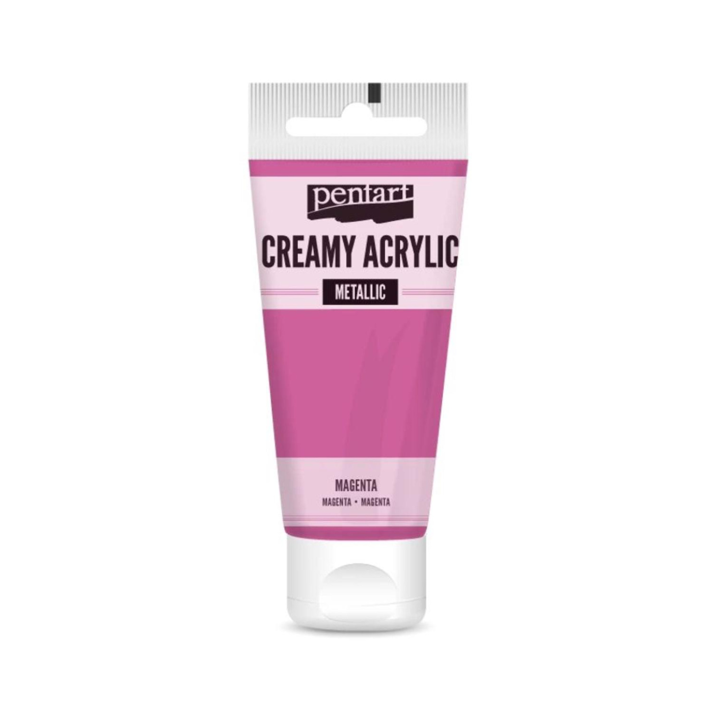 Krémová barva akrylová metalická je akrylová barva na vodní bázi s krémovou konzistencí a vysokým obsahem pigmentu. Můžete ji použít k malbě na plátno nebo papír, k dekorování různých dekorativních a užitkových předmětů, samozatvrzujících hliněných předmětů nebo k vytváření reliéfních textur pomocí špachtlí a šablon.