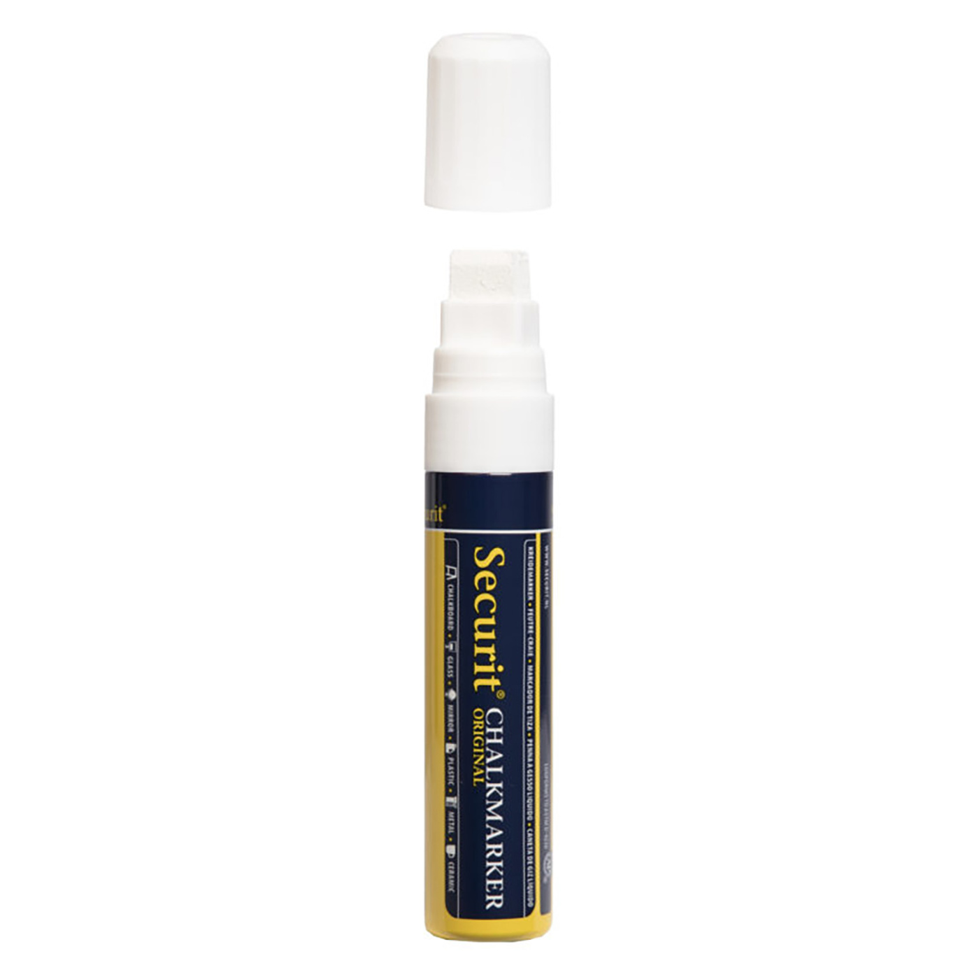 Křídový fix Securit má rovný hrot o velikosti 7 - 15 mm podle použité plochy.