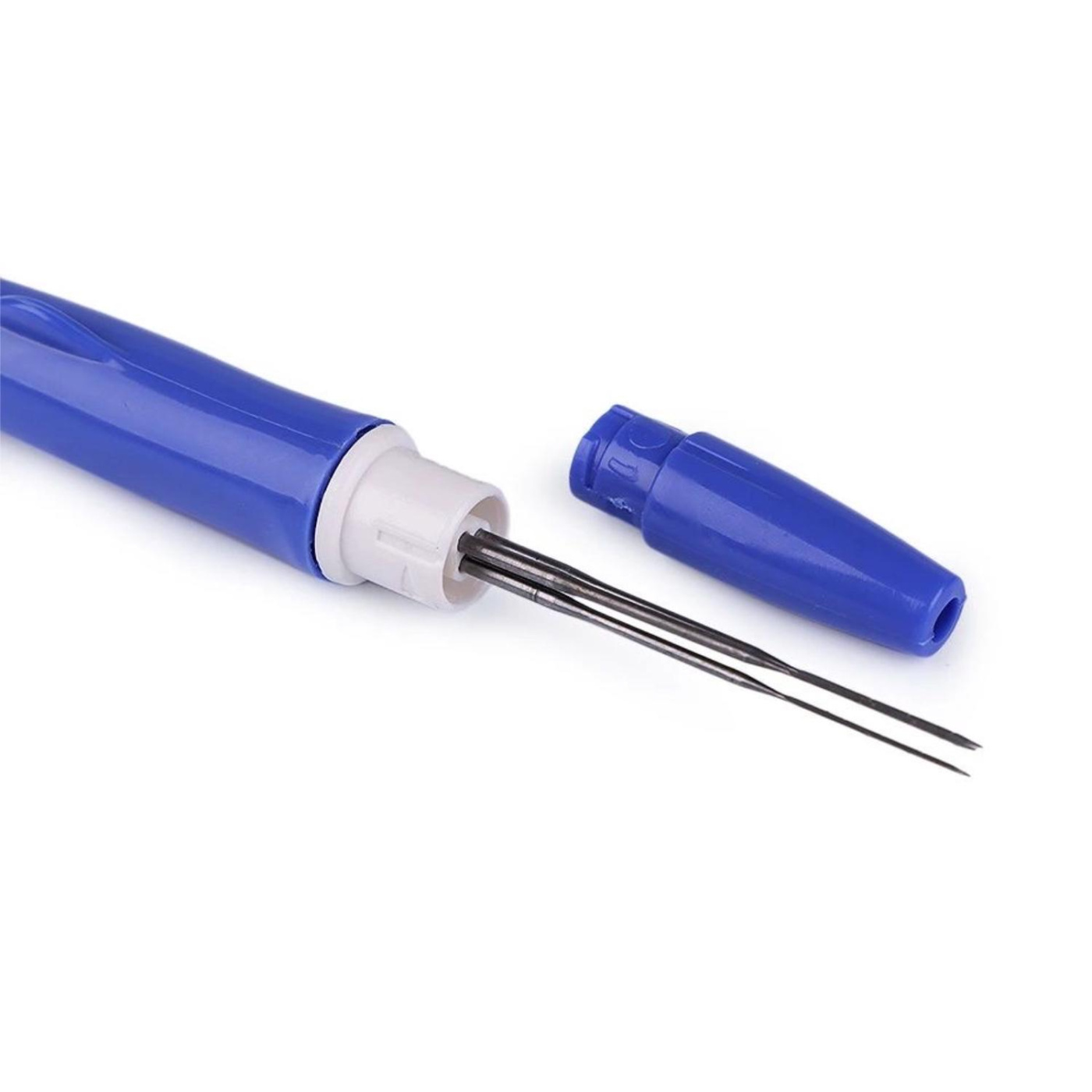 Výměna jehel: pokud se jehla zlomí, vyměňte ji za novou odšroubováním krytu pera a pokračujte výměnou jehly za novou, přičemž dbejte na to, abyste novou jehlu zasunuli až na doraz.