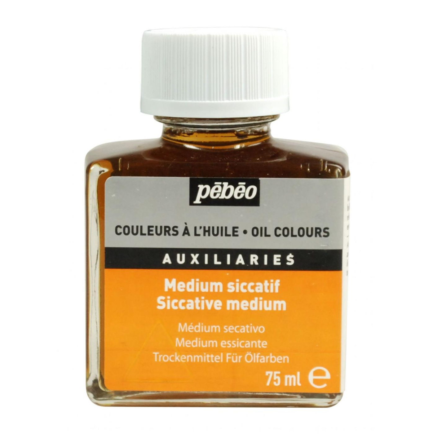 Pébéo Sicative je zázračný produkt určený pro milovníky olejomalby. Sikative je přípravek, který urychluje schnutí barvy. Sikative urychlí schnutí slabých barev i silnějších vrstev barev. Zvyšuje jejich pevnost a umožňuje jim důkladně zaschnout. Dodává světle jantarový odstín. Stejně jako olejové barvy se ředí nebo stírá minerálním lihem.