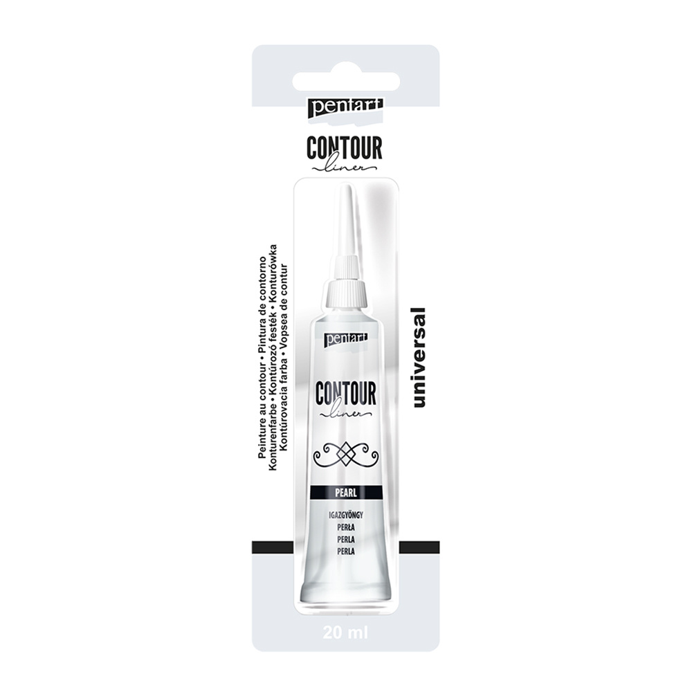 Univerzální konturovací barva je hustá barva na vodní bázi použitelná na libovolný povrch. Určena pro kraeslení linií a obrysů, pro zvýraznění objektů a jejich detailů, nebo pro tvorbu plastických elementů.