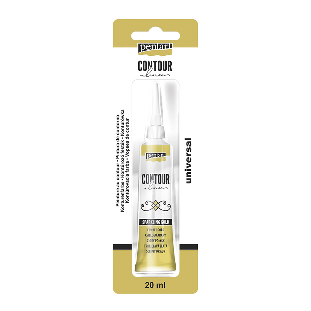 Univerzální konturovací barva je hustá barva na vodní bázi použitelná na libovolný povrch. Určena pro kraeslení linií a obrysů, pro zvýraznění objektů a jejich detailů, nebo pro tvorbu plastických elementů.